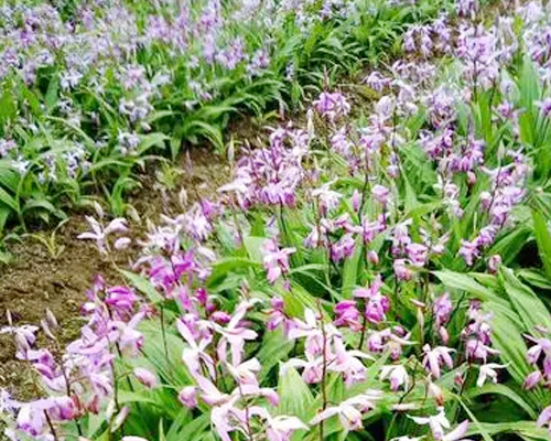 白及是蘭科白及屬的一種。多年生草本,高20~50厘米,葉4~5枚,基部互相套疊成莖狀,中央抽出花葶 ??偁罨ㄐ蚓邤?shù)朵花;花紫色或···